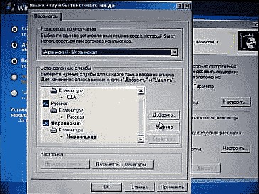 Дальше нажимаем нижнюю кнопку «Настроить», в открывшемся окне настраиваем языки ввода. Если на компьютере будут работать с текстовой информацией на английском, русском, украинском, белорусском или других языках, проследите чтобы все они отображались в окне «Установленные службы». Чтобы добавить язык, необходимо нажать кнопку «Добавить», в списке «Язык ввода» выбрать нужный язык и нажать кнопку «ОК». Удалить лишний язык можно, выделив его мышкой и нажав кнопку «Удалить». Дальше в списке «Язык ввода по умолчанию» выбираем язык, чаще всего используемый на компьютере, жмем кнопку «Применить», затем «ОК», затем «Далее».